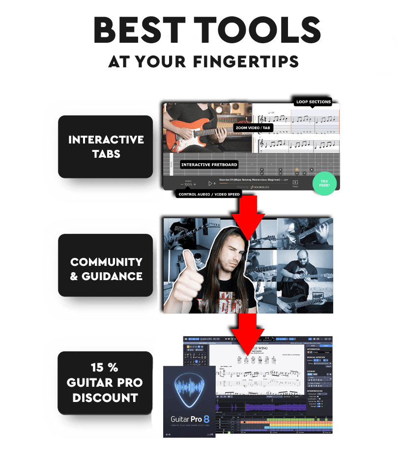 The only Must-Have guitar gear is a guitar and an amp or an audio interface that you can get sound from! Guitar Mastermind will give you a step-by-step process and show you how to become a professional guitar player with nothing but a guitar and an amp.